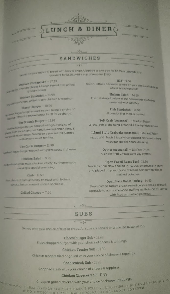 “ Went for breakfast one morning, came back for dinner and then breakfast the next morning! The food was amazing. You can't beat wholesome down home cooking. Our only regret is they weren't open for dinner Sunday evening or breakfast on Monday. We are looking foward to our next trip to Crisfield so we can get our From Scratch fix! ”